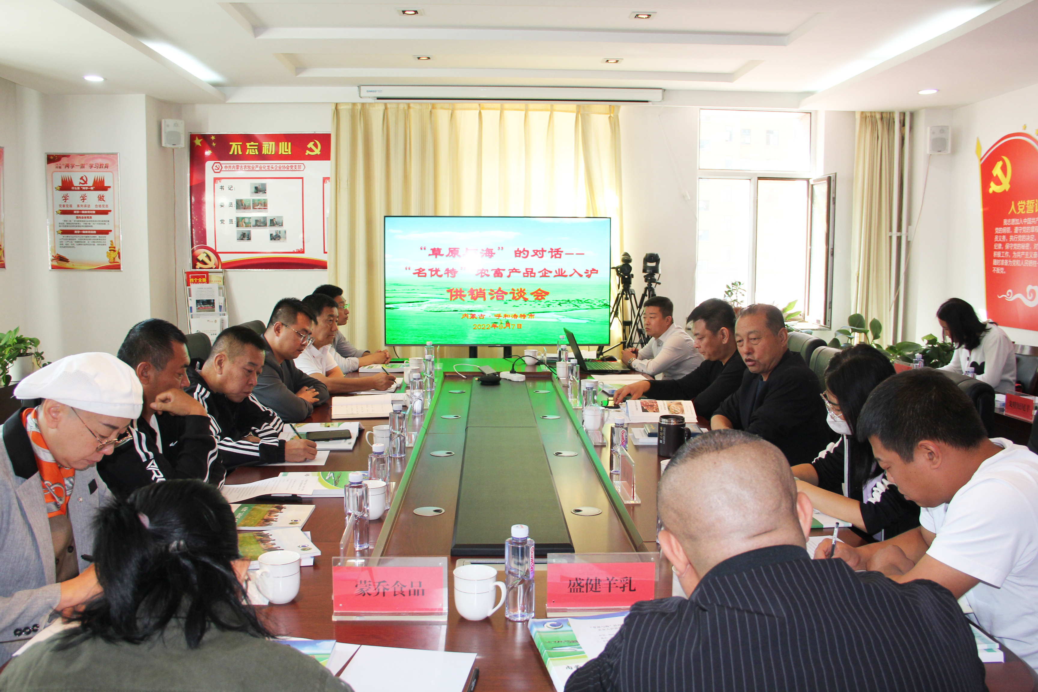 為貫徹落實《滬蒙兩地政府深化戰(zhàn)略合作框架協(xié)議》指示精神,依照上海市農(nóng)業(yè)農(nóng)村委員會與內(nèi)蒙古自治區(qū)農(nóng)牧廳簽署的《農(nóng)牧業(yè)合作協(xié)議》重點合作內(nèi)容,內(nèi)蒙古農(nóng)牧業(yè)產(chǎn)業(yè)化龍頭企業(yè)協(xié)會于2022年97上午,在呼和浩特市再次組織召“名優(yōu)特”農(nóng)畜產(chǎn)品企業(yè)入滬供銷洽談會,協(xié)會執(zhí)行會長林永亮,會員部部長周瑞龍,辦公室主任陳海燕,協(xié)會上海辦事處主任張國賢,副主任王政,顧問邢黎明教授內(nèi)蒙古旅游行業(yè)協(xié)會,策賦咨詢,協(xié)會會員單位:羊羊牧業(yè)、蒙亮、盛健生物、華歐淀粉、陰山優(yōu)麥、紅太陽、蒙喬食品、蘭格格乳業(yè)、高原杏仁露、龍鼎農(nóng)業(yè)、二龍屯15家單位代表參加會議。會議由協(xié)會上海辦事處副主任王政主持。