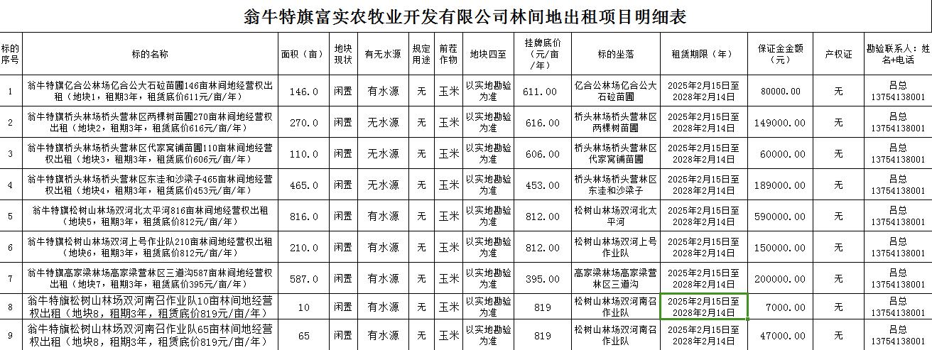 標的坐落:赤峰市翁牛特旗詳見項目明細表