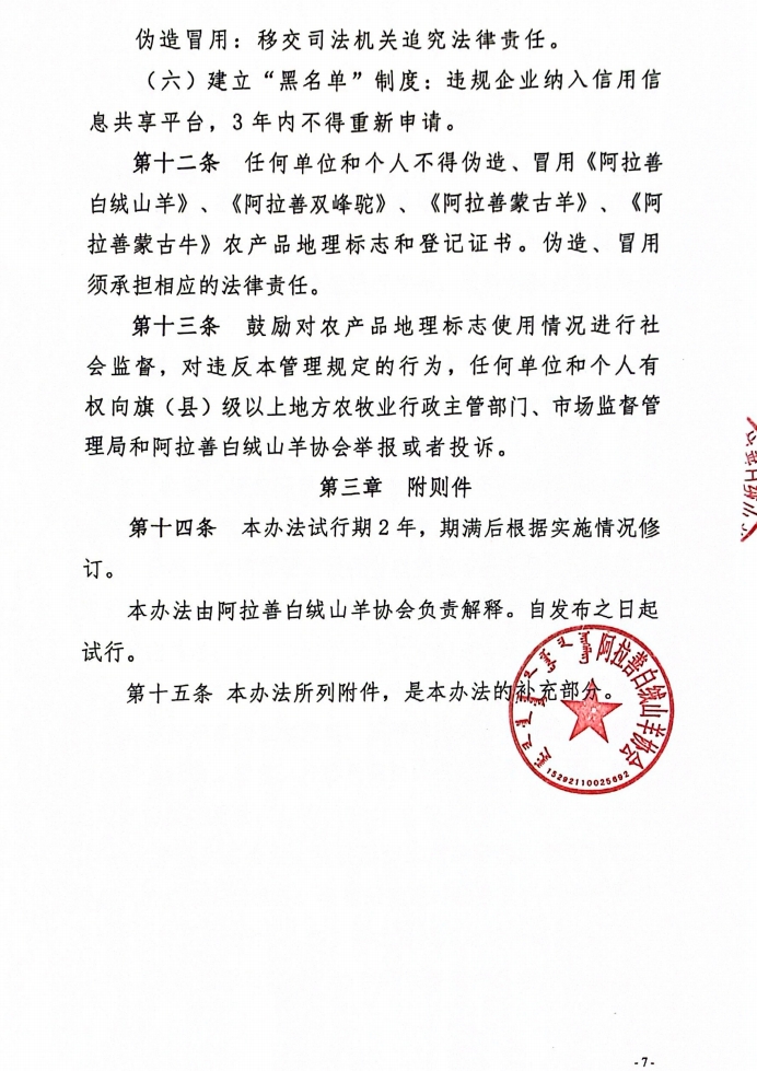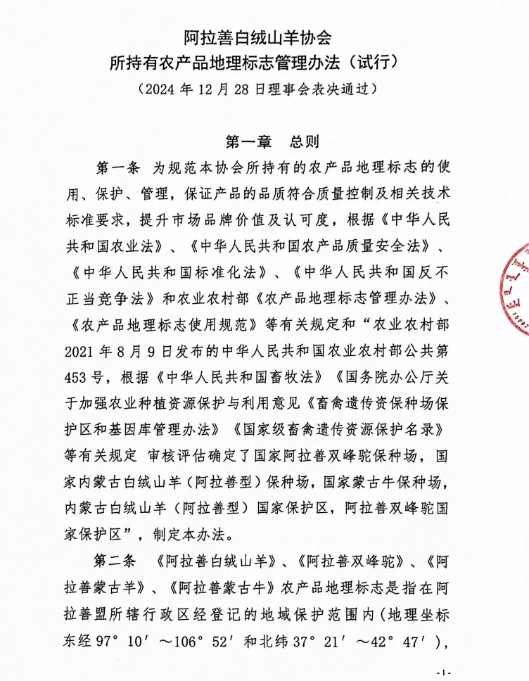 阿拉善白絨山羊協(xié)會所持有農(nóng)產(chǎn)品地理標志管理辦法(試行)
