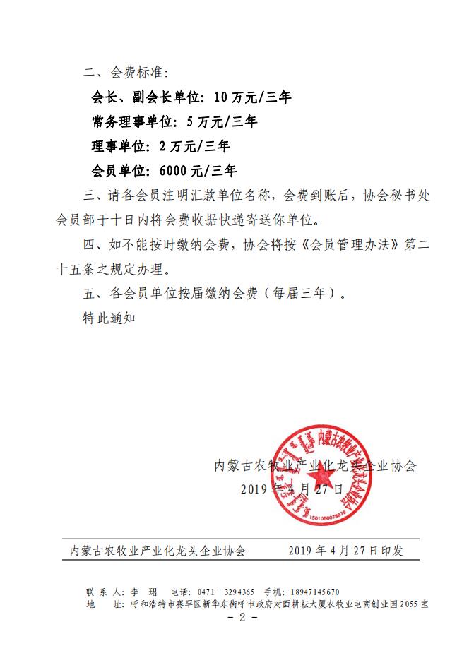 農產協(xié)會字[2019]8號 關于收繳會費的通知