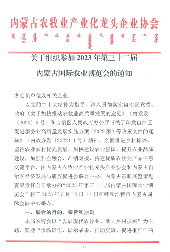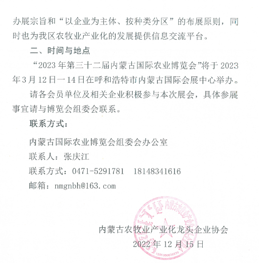 關于組織參加2023年第三十二屆內蒙古國際農業(yè)博覽會的通知