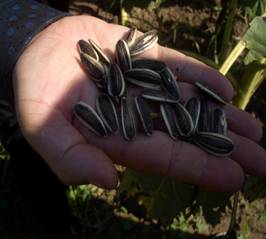 屬中晚熟種,生育期105天,株高180200cm,適應(yīng)性廣,種皮薄,易抓苗;抗病性強(qiáng)?;ūP(pán)直徑 18.521cm,單盤(pán)粒重151克左右,盤(pán)口緊密結(jié)實(shí);平均百粒重18.31克,籽粒飽滿,結(jié)實(shí)率高;籽粒長(zhǎng)2.0cm以上,寬0.9cm,種皮黑色帶白邊間有白條紋,顏色較為黑亮。